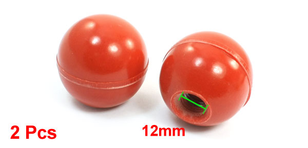 2Pcs Red Solid Plastic Ball Machine Handle Knob 42mm Diameter 12mm Thread