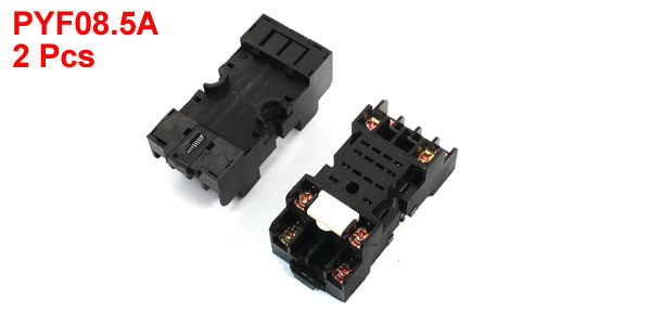 Details2PCS Replacement 35mm DIN Rail Mounting 8 Pins PYF08.5A Relay Socket Base Holder  Product Name Relay Base Fit for PYF08.5A Pin Quantity 8 Total Size (Approx.) 65 x 30 x 25mm / 2.6" x 1.2" x 1" (L * W *T) Mounting 35mm DIN Rail Material Plastic, Metal Main Color Black Weight 66g Package Content 2 x Relay Base