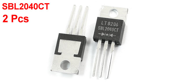 Product Name Dual Schottky Diode Type SBL2040CT Common Cathod Mounting Type Through Hole IO 20A VRRM 40V VFM 0.55V IFFSM 250A TJ 150°C Mounting Hole Diameter 3.6mm/0.14" Pin Size 14 x 2mm/0.55" x 0.08" ( L* W) Total Size 29 x 10 x 5mm/1.1" x 0.40" x 0.20 (L*W*T) Weight 5g Package 2 x Dual Schottky Diode - Reviews