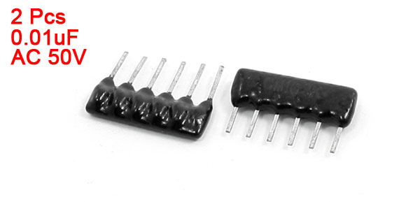 Product Name Network Capacitor Model CM Capacity 0.01uF Resistance Tolerance J (±10%) Pin 6 Pin Voltage AC 50V Material Electric Parts Size(Each) 15 x 8.7 x 2.3mm / 0.6" x 0.34" x 0.09"(L*W*T) Color Black Weight 2g Package Content 2 x Network Capacitor - Reviews