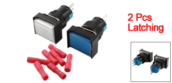 Item Name Push Button Switch Action Type Latching Type Head Shape Rectangle Head Contact SPDT Switch Rating AC 250V 3A, DC 30V 5A Pin Number 3 Thread Diameter 16mm/0.63" Total Size 24 x 18.5 x 32mm/0.94" x 0.73" x 1.3"(L*W*T) Material Metal, Plastic, Electric Parts Main Color Blue,Black Net Weight 19g Package Content 2 x Push Button Switch
