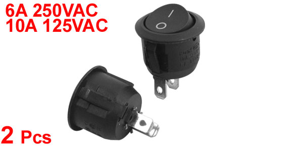 2Pcs SPST Black Button 2 Position Round Rocker Switch AC250V 6A AC125V 10A