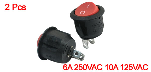 2Pcs SPST Red Button 2 Position Round Rocker Switch AC250V 6A AC125V 10A