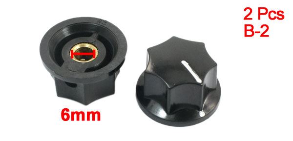 Product Name Potentiometer Knob Model B-2 Material Plastic, Copper Color Black Shaft Hole Dia. 6mm/ 0.24" Overall Size 28 x 16mm/ 1.1" x 0.63"(D*H) Weight 16g Package Included 2 x Potentiometer Knob - Reviews