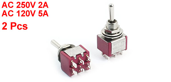 2pcs Switching Light Toggle Switch 3 Positions 6Pins DPDT AC 250V 2A 120V 5A