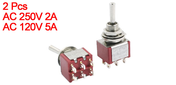 2pcs Switching Light Toggle Switch ON/OFF/ON 6Pins 2P2T AC 250V 2A 120V 5A