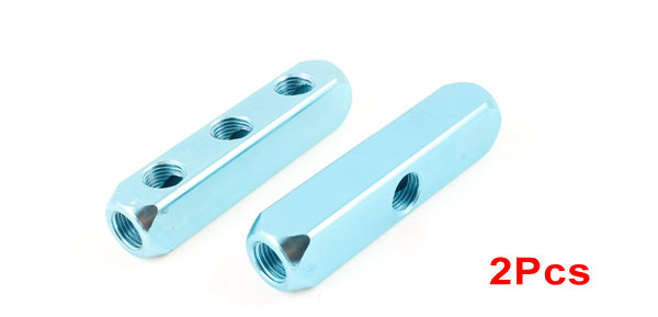 2pcs Turquoise Female Thread 3 Way Air Hose Inline Aluminum Air Manifold Block