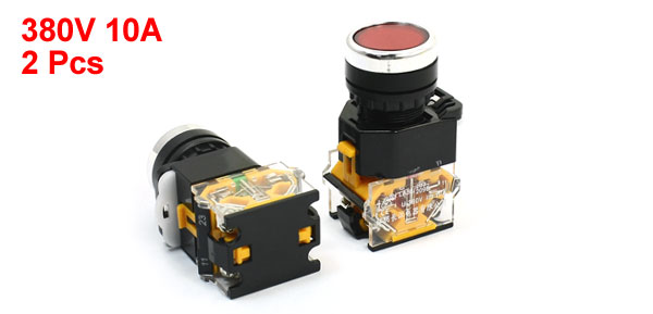 2Pcs Ui 380V Ith 10A 22mm Thread DPST Momentary Red Head Push Button Switch
