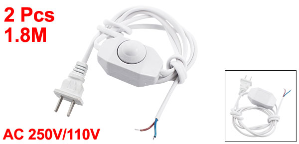 2Pcs White 1.8Meter Lamp Power Cord Swivel Dimmer Switch AC 250V/110V US Plug
