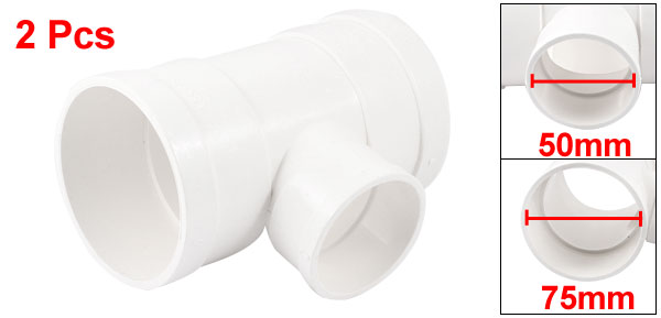2PCS White PVC 75 x 50mm T Type 3 Way Water Pipe Tube Adapter Connector