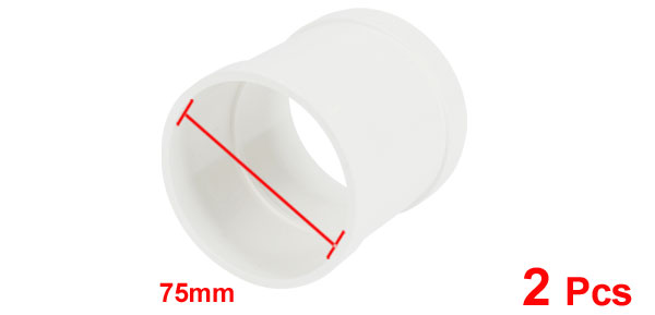 2PCS White PVC 75mm Inner Dia Straight Design Pipe Tube Connector