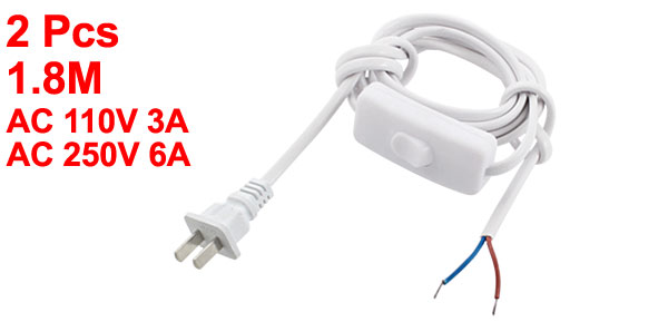 Product Name Power Cord Inline Switch Plug Type US Plug Cable Length 1.8m / 6Ft Rating AC 110V 3A / AC 250V 6A Switch Size 60 x 26 x 21mm/2.4" x 1" x 0.8"(L*W*T) Main Material Plastic, Metal Color White Weight 150g Package Content 2 x Power Cord w Inline Switch - Reviews