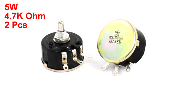 2pcs WX112(050) Round Shaft 3 Terminals Wire Wound Potentiometer 4.7K Ohm 5W