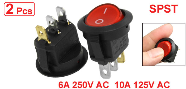Product Name Rocker Switch Poles SPST Terminals 3 Pin (On - Off) Rating Voltage 6A 250V AC 10A 125V AC Total Size(Each One) 23 x 29mm / 0.9" x 1.14"(D*H) Fixing Hole Size 19.6 x 23mm / 0.77" x 0.9"(D * H) Color Black, Red Material Plastic & Metal Total Weight 11g Package Content 2 x Rocker Switch - Reviews