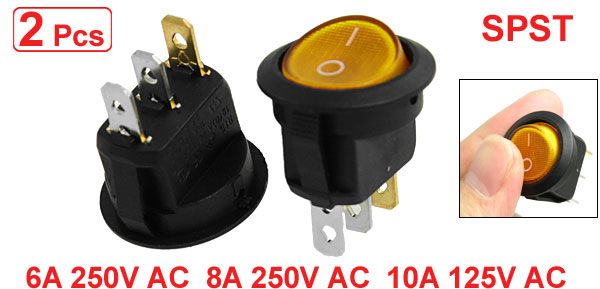 2pcs Yellow Light 3 Pin ON-OFF SPST Round Boat Rocker Switch 6A/250V 10A/125V AC