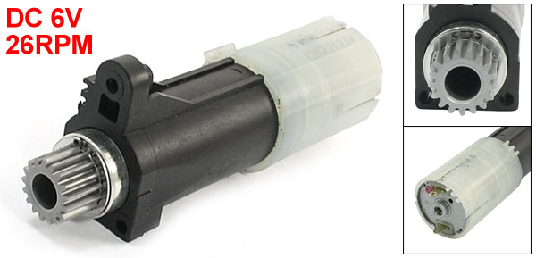 Product Name DC Motor Rated Voltage DC 6V Speed 26RPM Total Size 27 x 101mm/ 1.1" x 4" (D*H) Main Color Black, Clear Material Metal, Plastic Weight 120g Package 1 x DC Motor - Reviews