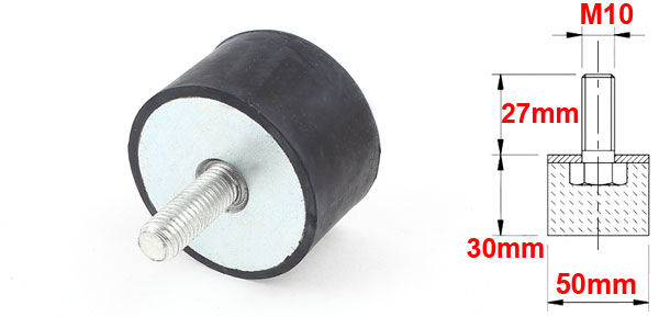 Product Name Rubber Vibration Isolator Mounts Material Metal, Rubber Thread Size (Approx.) M10 x 27mm(Dia.* L) Rubber Size (Approx.) 50 x 30mm / 2" x 1 1/8" (Dia.*H) Overall Height(Approx) 58mm / 2.4" Color Black, Silver Tone Weight 129g Package Content 1pcs x Rubber Vibration Isolator Mounts - Reviews