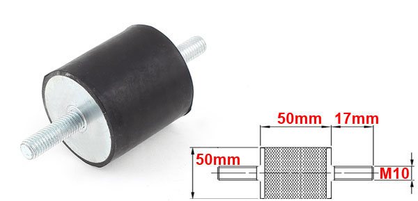 Product Name Rubber Vibration Isolator Mounts Material Metal, Rubber Thread Size (Approx.) M10 x 17mm(Dia.* L) Rubber Size (Approx.) 50 x 50mm / 2" x 2" (Dia.*H) Overall Height(Approx) 110mm / 4.3" Color Black, Silver Tone Weight 245g Package Content 1pcs x Rubber Vibration Isolator Mounts - Reviews