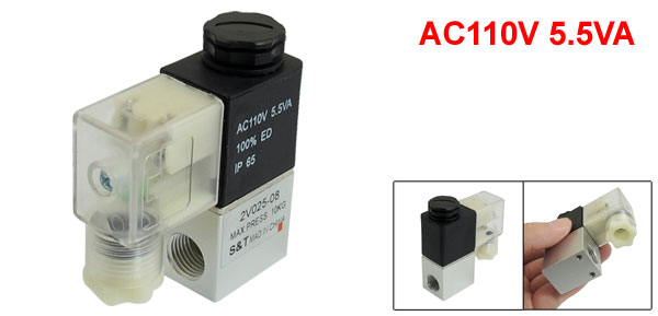 2V025-08 AC 110V 5.5VA 2 Position 2 Way Pneumatic Solenoid Valve 1/4"PT