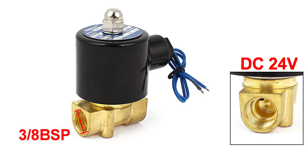 Details2W-10 DC 24V 3/8BSP Normal Close Water Gas Oil Electric Solenoid Valve  Product Name Solenoid Valve Model 2W-10 Type 2-Way , 2-Position Motion Type Direct Drive Type Contact Normal Close Orifice 4mm Working Medium Water, Gas, Oil Voltage DC 24V Max. Operating Pressure 1MPa Operating Temperature -5 to 80 C Female Thread Diameter 15mm / 3/8BSP Total Size 70 x 45 x 85mm / 2.8" x 1.8" x 3.3" (L*D*H) Cable Length 16cm / 6.3" Material Brass, Plastic Color Black , Gold Tone Net Weight 423g Package Content 1 x Solenoid Valve