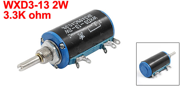 Product Name Wire Wound Potentiometer Model WXD3-13-2W Type Multiturn Technology Wire Wound Terminal Number 5 Rated Power 2 W Resistance Value 3.3K Ω Tolerance 5% Body Size 26 x 20mm / 1" x 0.79"(L * D) Screw Thread Dia. 7.5mm / 0.3" Shaft Diameter 4mm / 0.16" Total Length 48mm/ 1.9" Color Blue, Black Weight 30g Package Content 1 x Wire Wound Potentiometer - Reviews