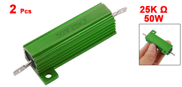 Product Name Aluminum Housed Resistor Resistance Value 25K Ω Power Rating 50W Resistance Tolerance ± 5% (J) Body Size 49 x 15mm/ 1.9" x 0.59" (L*D) Mounted Hole Size 1.8mm/ 0.07", 3mm/ 0.12" Total Size 72 x 22 x 15mm/ 2.8" x 0.86" x 0.59" (L*W*T) Casing Material Aluminum Color Green Weight 48g Package Content 2 x Aluminum Housed Resistor - Reviews