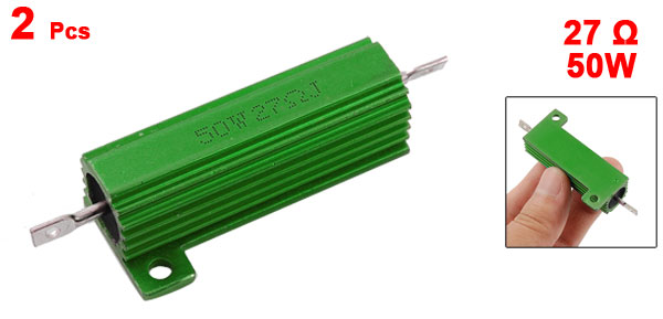 Product Name Aluminum Housed Resistor Resistance Value 27 Ω Power Rating 50W Resistance Tolerance ± 5% (J) Body Size 49 x 15mm/ 1.9" x 0.59" (L*D) Mounted Hole Size 1.8mm/ 0.07", 3mm/ 0.12" Total Size 72 x 22 x 15mm/ 2.8" x 0.86" x 0.59" (L*W*T) Casing Material Aluminum Color Green Weight 48g Package Content 2 x Aluminum Housed Resistor - Reviews