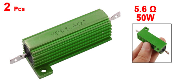 Product Name Aluminum Housed Resistor Resistance Value 5.6 Ω Power Rating 50W Resistance Tolerance ± 5% (J) Body Size 49 x 15mm/ 1.9" x 0.59" (L*D) Mounted Hole Size 1.8mm/ 0.07", 3mm/ 0.12" Total Size 72 x 22 x 15mm/ 2.8" x 0.86" x 0.59" (L*W*T) Casing Material Aluminum Color Green Weight 48g Package Content 2 x Aluminum Housed Resistor - Reviews