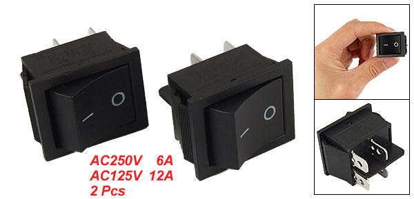 Item Name Rocker Switch Type On/ Off (DPST) Voltage & Current AC250V, 6A AC125V, 12A Overall Size(Pin Included) 21 x 15 x 27mm/ 0.8" x 0.6" x 1"(L*W*H) Mount Hole Size 20 x 13mm / 0.8" x 0.5"(L*W) Color Black Material Plastic & Metal Total Net Weight 24g Package Content 2 x Rocker Switch - Reviews
