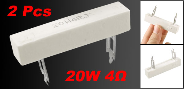 Product Name Cement Resistor Body Material Ceramic, Cement Power 20W Resistance 4Ω Tolerance ±5% Body Size (Approx.) 62 x 12 x 12mm / 2.4" x 0.47" x 0.47" (L * W * H) Pin Size (Approx.) 22 x 10mm / 0.87" x 0.4"(L*W) Color White Weight 44g Package Content 2 x Cement Resistors - Reviews