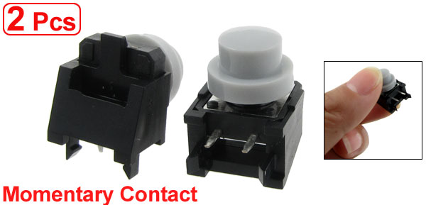 Product Name Tact Switch Contact Type Momentary Contact Size 12 x 12 x 13mm/0.47" x 0.47" x 0.51" (L*W*H) Overall Size 19 x 13 x 17mm/0.7'' x 0.5'' x 0.7'' (L*W*H) Button Dia. 8mm/0.31'' Pin Pitch 5mm/0.2'' Pin Length 5mm/0.2'' Material Plastic, Metal, Electric Parts Color Black, Gray Net Weight 4g Package Content 2 x Tact Switch - Reviews