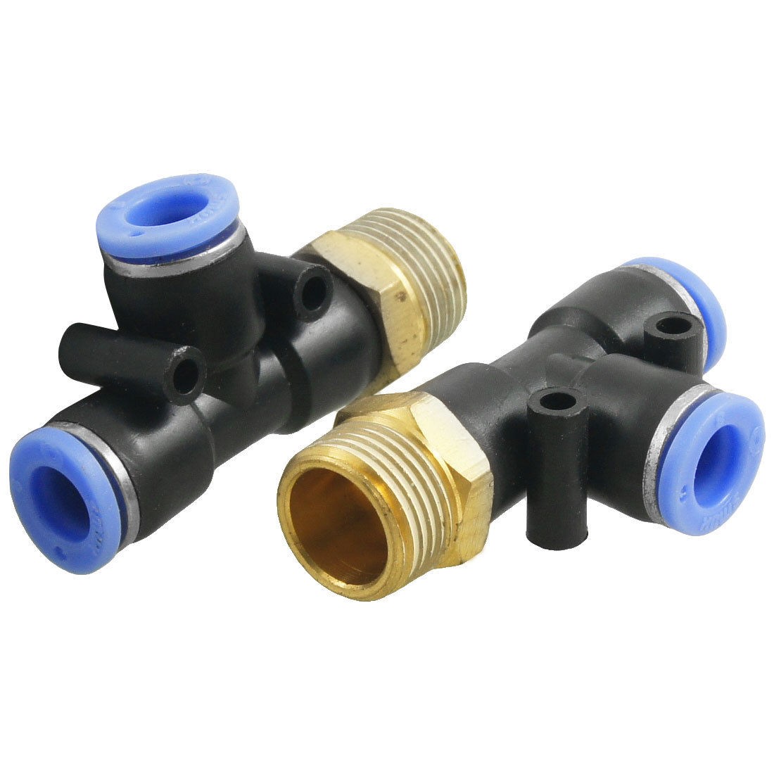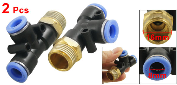 Product Name Pneumatic Quick Fittings Type T Connector One Touch Connector 8mm/ 0.31" Male Thread Connector 16mm/ 0.63" Thread Size 3/8" Material Plastic, Metal Dimension (Approx) 5 x 3 x 1.7cm/ 2" x 1.2" x 0.67" (L*W*T) Color Black, Blue Weight 50g Package Content 2 x Pneumatic Quick Fittings - Reviews