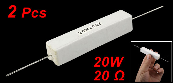 Product Name Cement Resistor Body Material Ceramic, Cement Power 20W Resistance 20Ω Tolerance ±5% (J) Body Size (Approx.) 61 x 12 x 13mm/2.4" x 0.47" x 0.51" (L * W * H) Lead Diameter (Approx.) 0.7mm / 0.027" Color White Weight 43g Package Content 2 x Cement Resistor - Reviews