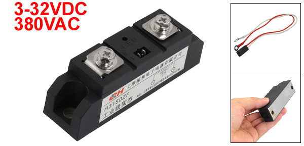 Product Name Solid State Relay Model No. H3150ZF Control Method DC to AC Current 150A Input Voltage 3-32V DC Output Voltage 380V AC Mount Hole Diameter 6.5mm/ 0.26" Mount Hole Distance 80mm/ 3.15"(Center to Center) Relay Size (Approx.) 9.4 x 2.5 x 3.8cm/ 3.7" x 1" x 1.5" (L*W*H ) Wire Length 25cm/ 9.8" Material Metal, Plastic Main Color Black Weight 149g Package Content 1 x Solid State Relay