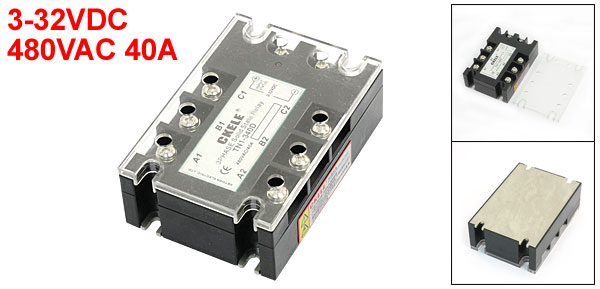 Product Name Solid State Relay Model No. TN1/340D Input 3-32VDC Output 480VAC 40A Pole Numbers 3P Size (Approx.) 104 x 73 x 35 / 4.1" x 2.9" x 1.4" (L*W*T) Main Color Black, Silver Tone Material Metal, Plastic, Electric Parts Weight 249g Package Content 1 x Solid State Relay
