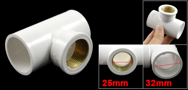 Product Name Pipe Connector Type 3 way Female Thread Dia (Approx.) 3/4" PT (25mm / 0.984") Tube Inner Hole Dia 32mm/ 1.259" Overall Size (Approx.) 70 x 38 x 57mm / 2.8" x 1.5" x 2.2"(L*W*H) Material PVC, Brass Color White Weight 53g Package Content 1 x Pipe Connector - Reviews