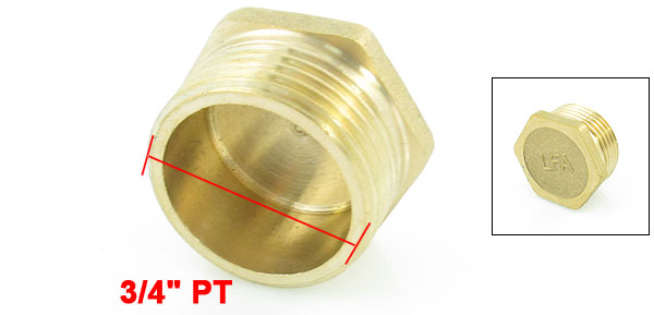 Product Name Hex Head Pipe Plug Color Gold Tone Material Brass Thread Diameter 3/4" PT Hex Side to Side Diatance 8.1mm/0.32" Total Size 15 x 30 mm/0.6" x 1.2"(L*Max.D)