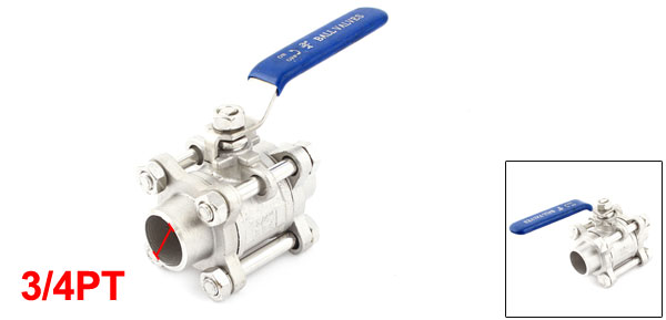 Product Name Three-Piece Ball Valve Type 3/4PT Female to Female Port Diameter 22mm/0.87"(3/4PT) Rotating Degree 90 Degree Body Size 77 x 49 x 49mm/3" x 2" x 2"(L*W*H) Level Handle Size 108 x 18mm/4" x 0.71" (L*W) Color Silver Tone, Blue Material Stainless Steel, Plastic Net Weight 541g Package 1 x Three-Piece Ball Valve - Reviews
