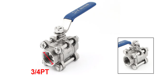 Product Name Three-Piece Ball Valve Type 3/4PT Female to Female Female Thread Diameter 24mm/0.94"(3/4PT) Rotating Degree 90 Degree Body Size 73 x 50 x 50mm/2.8" x 2" x 3"(L*W*H) Level Handle Size 129 x 20mm/5" x 0.8" (L*W) Color Silver Tone, Blue Material 304 Grade Stainless Steel, Plastic Net Weight 576g Package 1 x Three-Piece Ball Valve - Reviews