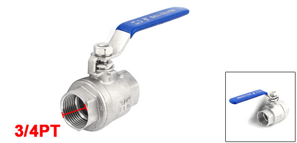 Product Name Ball Valve Type 3/4PT Female to 3/4PT Female Female Thread Diameter 24mm/3/4PT Rotating Angle Right Angle Body Size 56.5 x 36.6mm/ 1.7" x 1" (L*W) Level Handle Size 102 x 16.5mm/4" x 0.65" (L*W) Color Silver Tone, Blue Material 201 Grade Stainless Steel Net Weight 255g Package 1 x Ball Valve - Reviews