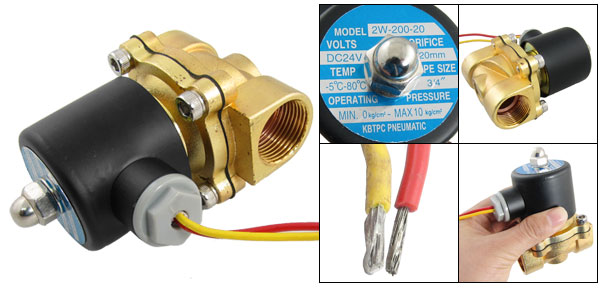 Product Name Solenoid Valve Model 2W-200-20 Type Two-position, Two-way Use Fluid Air, Water, Oil, Gas Switch Type NC Flow Pore Size 20mm CV Value 7.6 Joint Pipe Bore 3/4'' Fluid Viscosity <20CST Pressure 0~10kg/cm2 Operating Temperature -5 ~ 80 Degree Centigrade Current 0.1A Voltag DC 24V