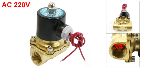 Product Name Solenoid Valve Model 2W-200-20 Type Two-position, Two-way Use Fluid Air, Water, Vapour Switch Type NC Flow Pore Size 20mm/0.78'' Joint Pipe Bore 26mm/3/4" Pressure 0~10kg/cm2 Operating Temperature -5 to 100 Degree Centigrade Voltage AC 220V