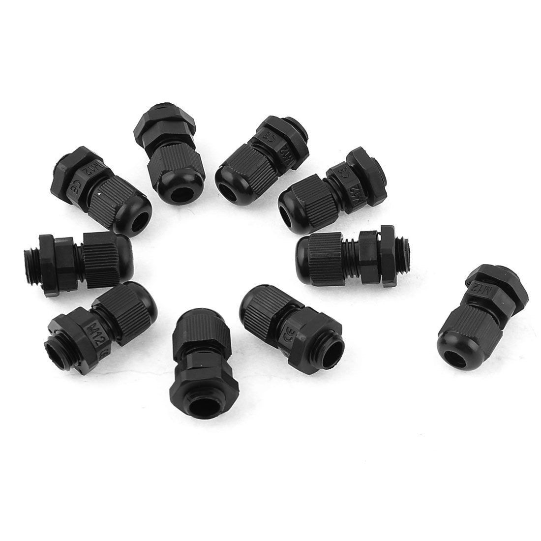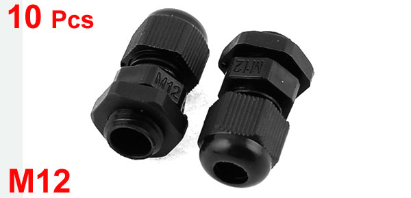 Product Name Cable Gland Model M12 Cable Range 3-6.5mm / 0.1"- 0.25" Thread O.D. 12mm / 0.59“ Thread Length 9mm / 0.35” Total Size 18 x 30mm / 0.7" x 1.2" (D*H) Material Plastic Color Black Weight 44g Package Content 10 x Cable Gland - Reviews