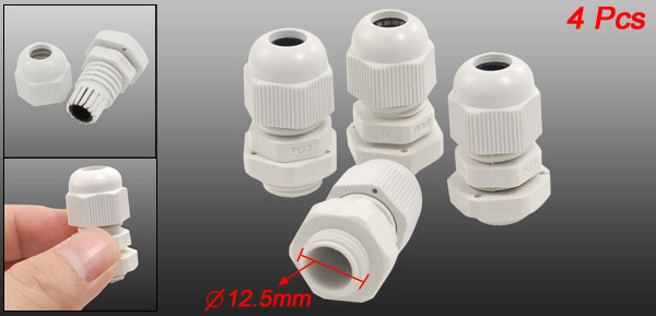 3-6.5mm Cables PG7 Waterproof Wht Plastic Glands 4 Pcs