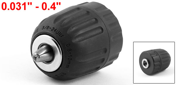 Product Name Drill Chuck Capacity 0.8-10mm/ 0.031" - 0.4" Mount 3/8-24UNF Drill Chuck Inner Thread Dia 8mm/0.31" Drill Chuck Outer Dia 41mm/ 1.6" Drill Chuck Total Length 51mm/ 2" Color Silver Tone, Black Material Steel, Metal, Plastic Weight 150g Package Content 1 x Drill Chuck