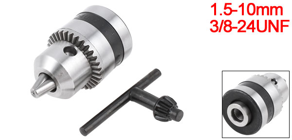 3/8-24UNF Mounted Silver Tone Spanner Drill Chuck 1.5-10mm