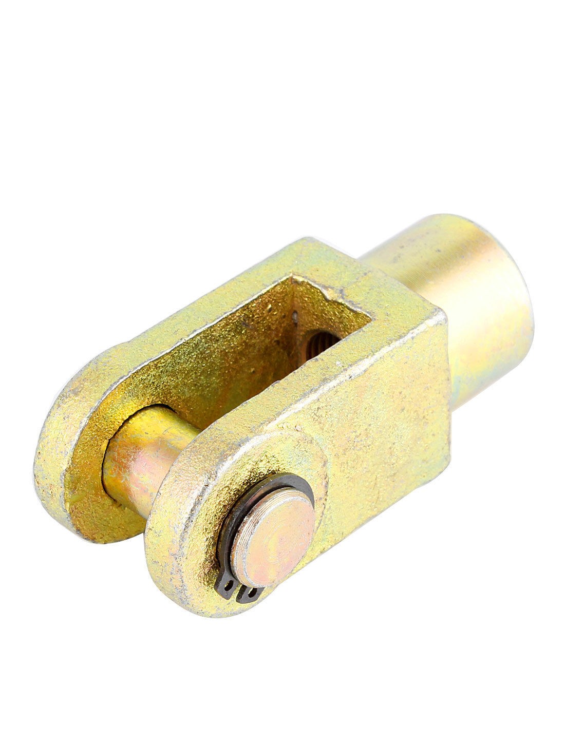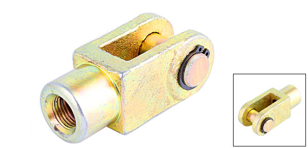 Details3/8 PT to 3/4 PT Male Thread Cylinder Rod Clevis End Brass Tone  Product Name Cylinder Clevis Material Brass Type Y Joint Female Thread Diameter 15mm Male Thead Diameter 28mm Thread Size 3/8 PT to 3/4PT(F to M) Clevis Pin Diameter 16mm / 0.6" Inner Gap Between Two Plate 17mm / 0.7" Total Size 80 x 43 x 31mm / 3.1" x 1.7" x 1.2" (L * W * T) Color Brass Tone Weight 317g Package Content 1 x Cylinder Clevis