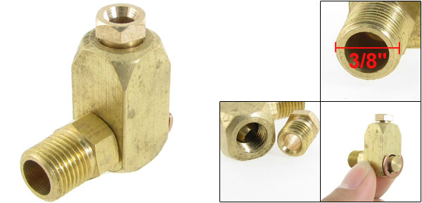 Product Name Brass Connector Design Elbow, 2 Way Hole Diameter 4mm/ 5/32" Male Thread Diameter 9.5mm/ 3/8" Overall Size 28 x 12 x 28mm/ 1.1" x 0.47" x 1.1" (L*W*T) Material Brass Color Gold Tone Net Weight 30g Package Content 1 x Brass Connector - Reviews