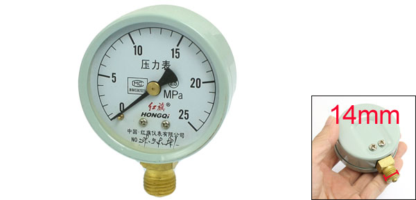 Product Name Pressure Gauge Range 0-25MPa Accuracy Class Class 2.5 Total Size 81 x 60 x 29mm/ 3.2" x 2.4" x 1.1" ((L*D*T) Thread Diameter 3/8" NPT(14mm) External Material Metal Color As Picture Shown Net Weight 117g Package Content 1 x Pressure Gauge - Reviews