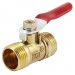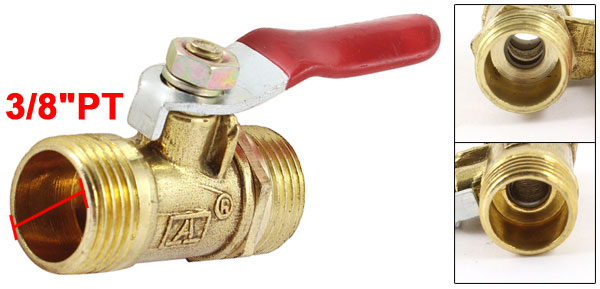 3/8" PT Male Thread M/M Red Lever Handle Full Port Brass Ball Valve Gold Tone